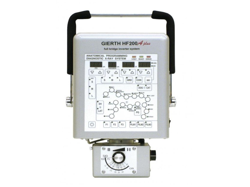 Gierth HF200APower je zárukou skvělých výsledků i bez sebemenších znalostí zákonitostí rentgenologie. Nastavení expozičních parametrů je otázkou dvou stisknutí tlačítka na ovládacím panelu. Anatomický program firmy Gierth je na trhu veterinárních přenosných rtg generátorů zcela unikátní a je potvrzením vedoucí pozice firmy Gierth ve vývoji veterinárních přenosných rentgenů spolu s tradiční spolehlivostí japonské výroby.